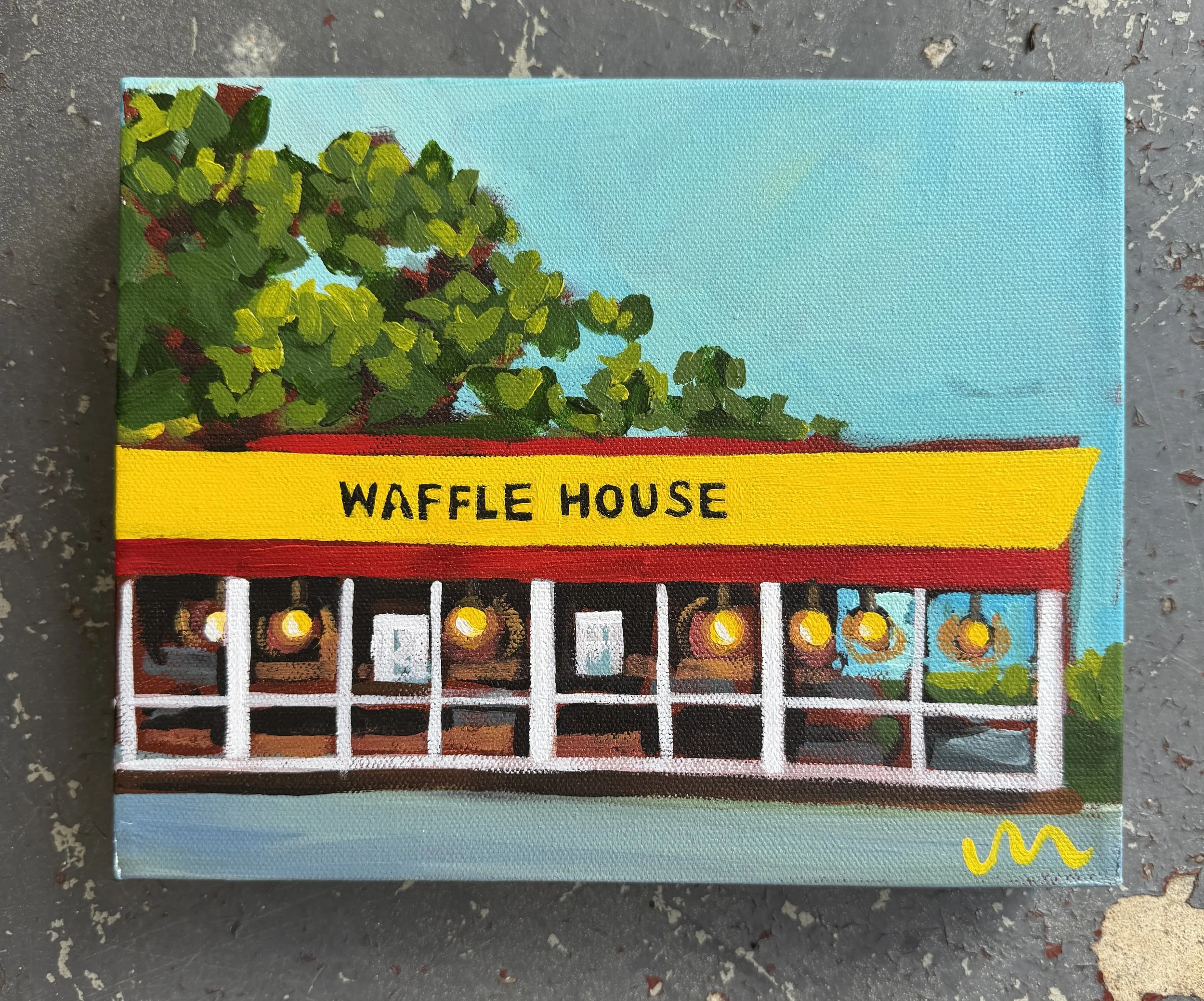 8x10 inch original painting of the iconic Waffle House. Acrylic on canvas. Happy New Year January 1, 2025.